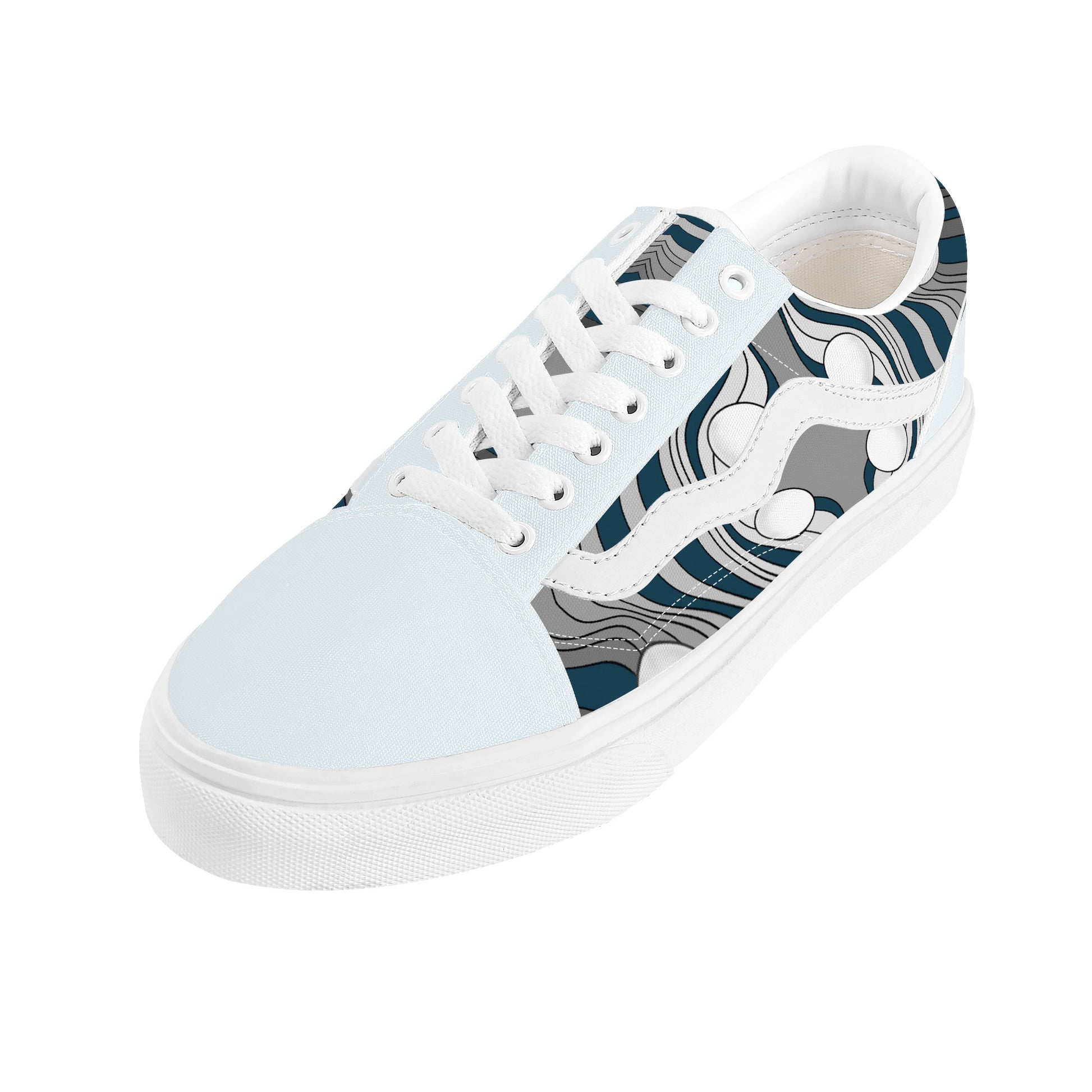 The Snow Blue casual low tops bring everyday wearability into the spotlight with a sleek profile and distinctive detailing. Built for comfort and style, they feature a cushioned insole, breathable lining, and a durable rubber sole—perfect for pairing with anything from joggers to denim.