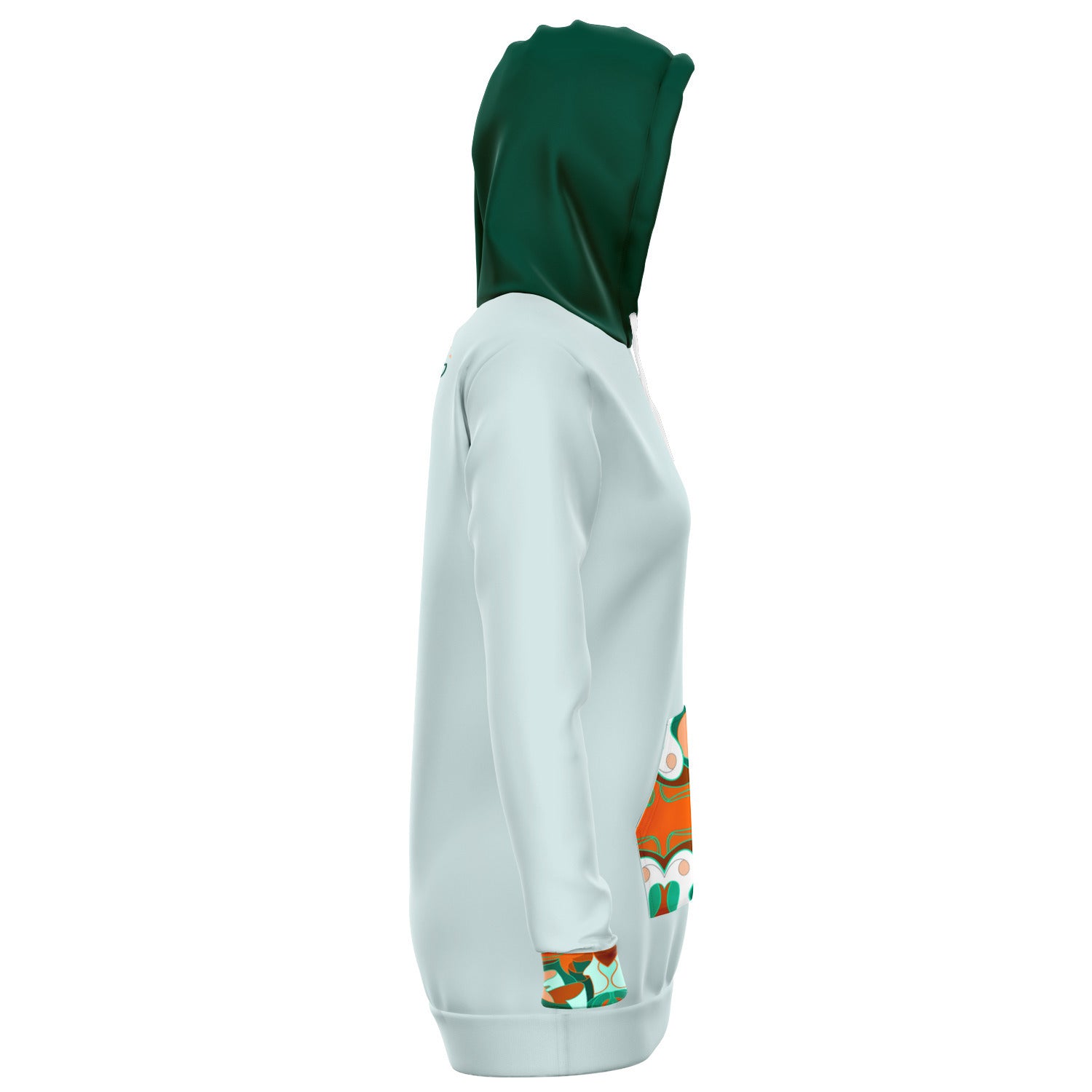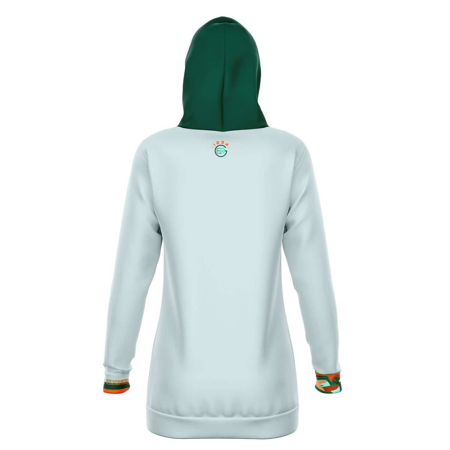 Cut with a feminine-shaped silhouette, this Mervelli Vert hoodie dress blends casual ease with refined detailing. The two-way stretch fabric moves effortlessly with you, while the double-layer hood and kangaroo pocket add both function and style. Orange accents from the collection elevate the look, making it a statement piece for everyday wear or dressed-up street style.