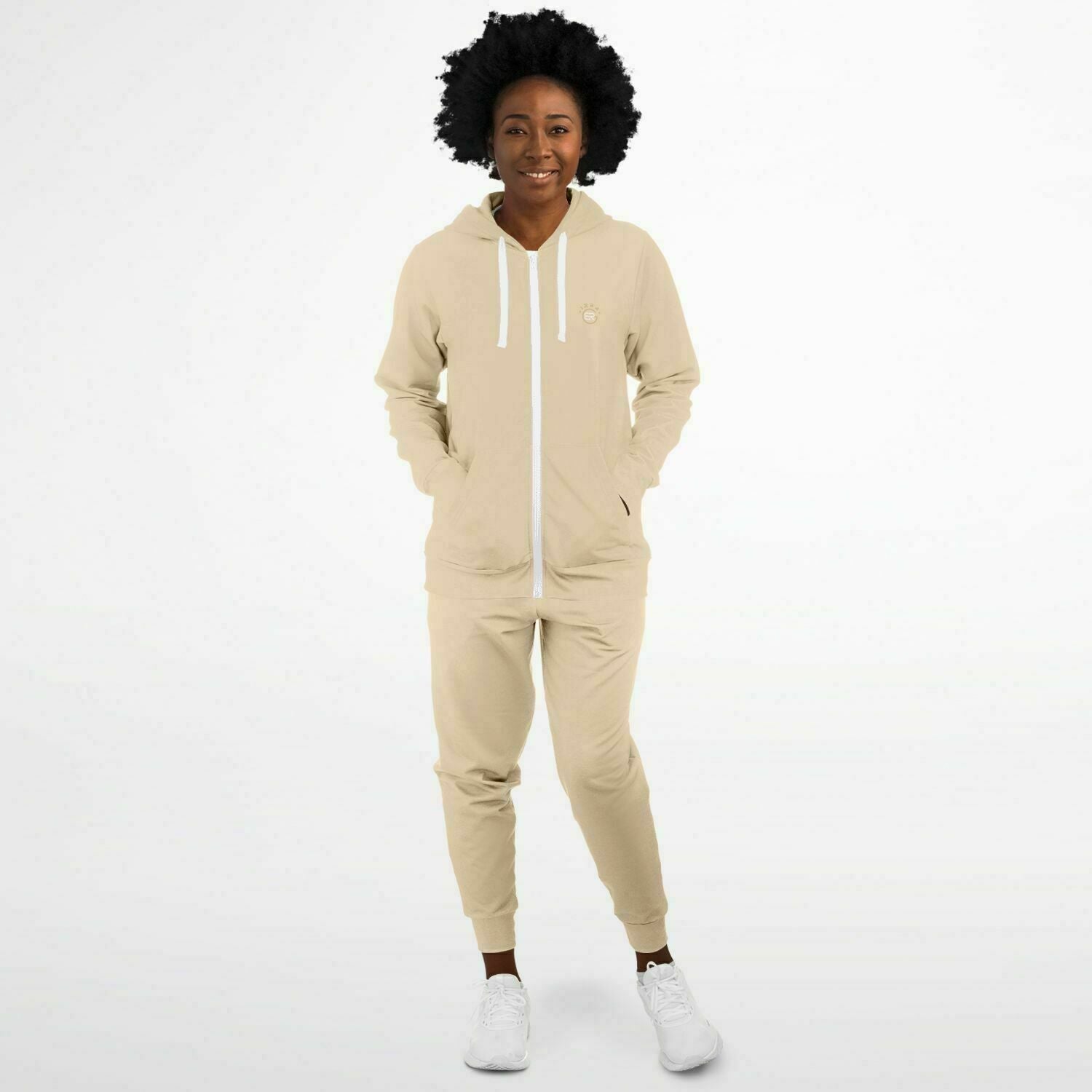 Your stylish designs will definitely be on-point with this fashion ziphoodie and jogger set. The ziphoodie comes with a double layer hood and a kangaroo pocket, while the jogger comes with two side pockets.