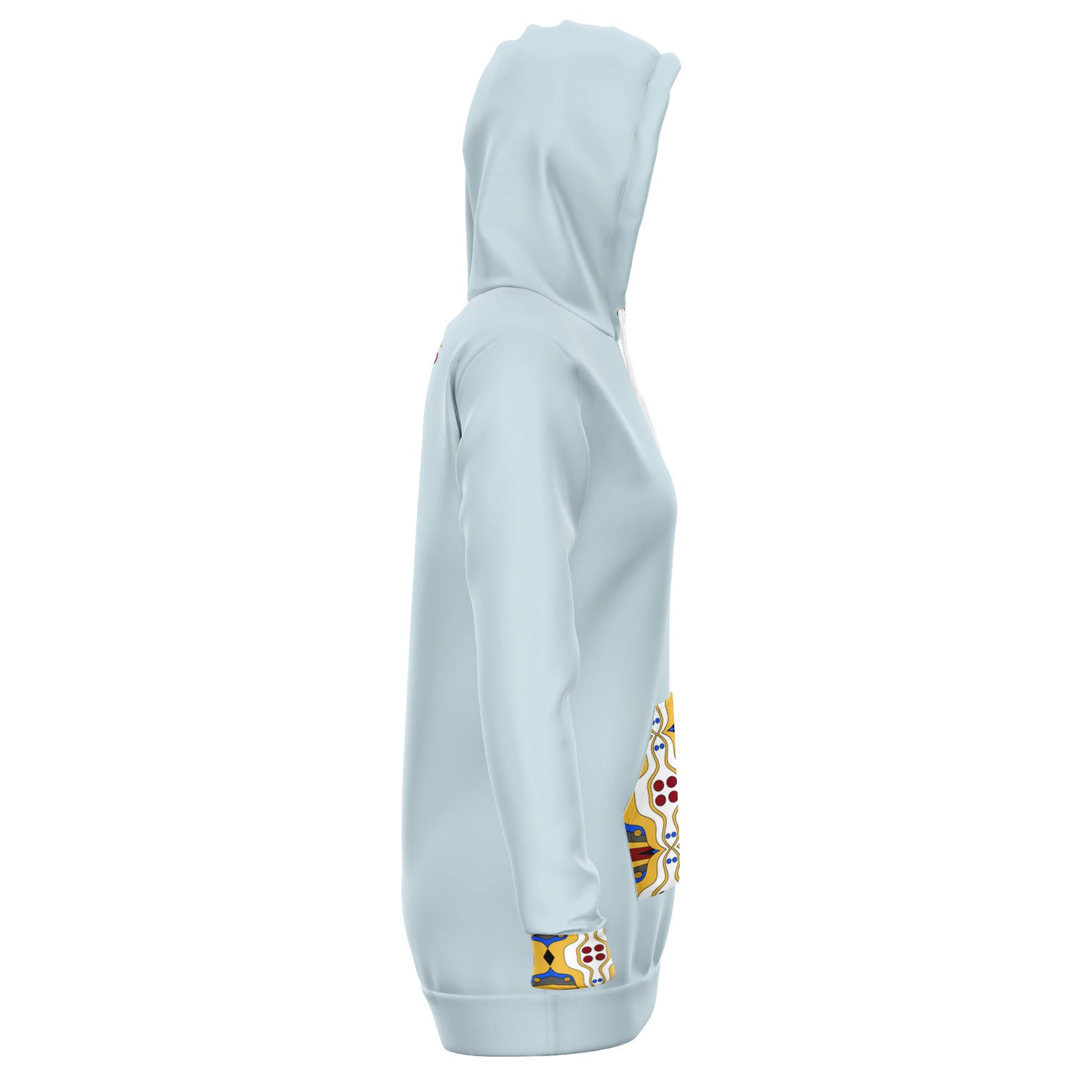 Cut with a feminine-shaped silhouette, this Powdeer Blue Russet hoodie dress blends casual ease with refined detailing. The two-way stretch fabric moves effortlessly with you, while the double-layer hood and kangaroo pocket add both function and style. Golden Ochre accents from the collection elevate the look, making it a statement piece for everyday wear or dressed-up street style.